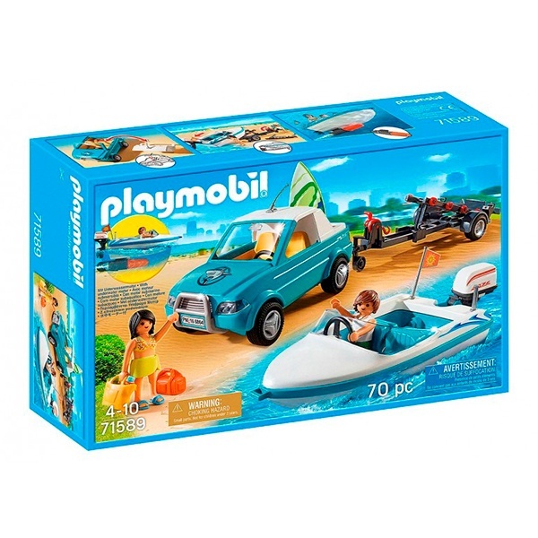 Prepárate para la aventura acuática definitiva con el Playmobil 71589: Pick Up con Lancha! Este conjunto de última generación combina lo mejor de dos mundos: la versátil recogida y una lancha equipada con un motor submarino (5159) para emocionantes días en la playa.