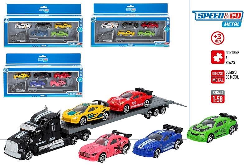 Camion c/5 coches metal speed & go 1:58 – 6 pzas. – surtidos aleatorios