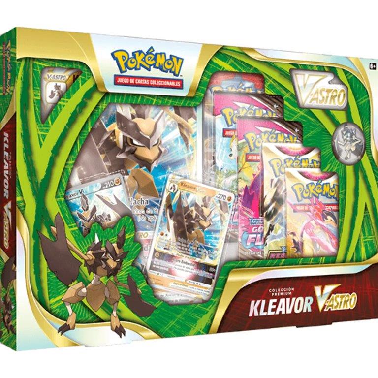 | Descripción | Coleccion premium kleavor pokemon v-astro – 3 cartas holografiadas,5 paquetes mejo |