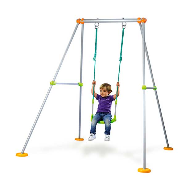 Un gran columpio infantil de 180 cm. de alto con estructura de tubo de acero de fácil ensamblado y alta resistencia. Este juguete de Smoby incluye asiento evolutivo de plástico rígido y seguro, anillo de seguridad separable y protectores en la terminación de todos los tubos. Todo el plástico utilizado ha sido sometido a nuestro tratamiento anti-UV que protege el color y la resistencia del plástico aumentado su duración. Mide 164 x 168 x 180 cm. El regalo ideal para fomentar el juego al aire libre de los niños y niñas a partir de 12 meses de edad.