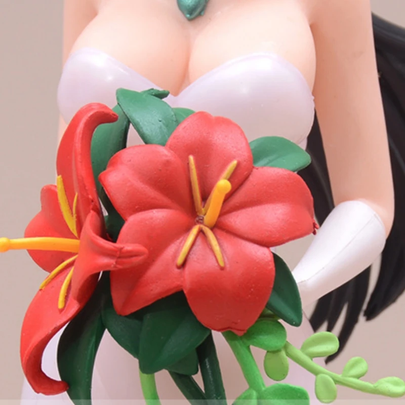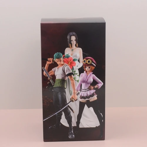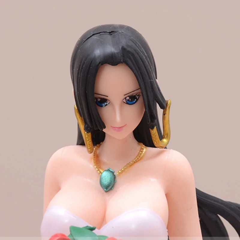 La figura de Boa Hancock ha sido diseñada con una meticulosa atención al detalle, desde su elegante vestido de novia blanco sin tirantes, el delicado ramo de flores rojas y verdes que sostiene, hasta su collar turquesa y sus pendientes dorados. Su cabello largo y negro fluye con gracia, complementando su pose serena y la expresión de su rostro. Con una altura de 23cm, esta figura no solo es una representación fiel de Hancock, sino también una obra de arte que irradia sofisticación y un toque de ensueño.