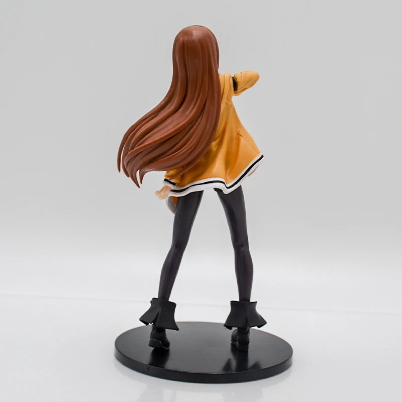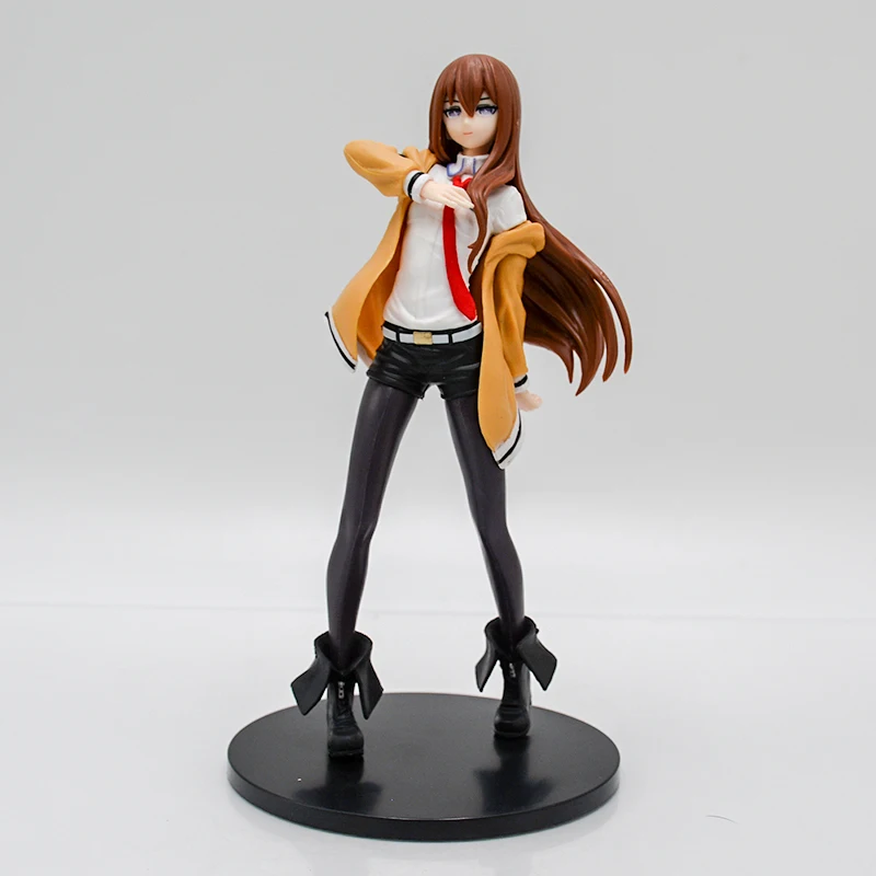 La figura de Makise Kurisu ha sido diseñada con una atención meticulosa a cada detalle, desde su larga cabellera castaña hasta su atuendo característico: la chaqueta de laboratorio, la camisa de vestir blanca con corbata roja, los pantalones cortos negros y las botas. Con una altura de 18cm, esta pieza es una representación fiel del personaje, capturando su inteligencia y su aire enigmático. La base redonda y simple asegura que la figura destaque sin distracciones, permitiendo que la «Asistente» brille por sí misma.