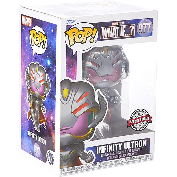 Funko Pop! What if Infinity Ultron con arma de jabalina exclusiva 977 y cabeza oscilante.