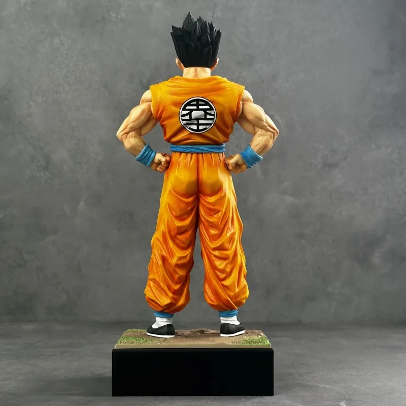 Cada aspecto de esta figura de Gohan ha sido meticulosamente esculpido para reflejar su apariencia muscular y su atuendo de combate. Desde los pliegues de su dogi naranja y su faja azul hasta la tensión en sus brazos y la expresión concentrada en su rostro, la atención al detalle es excepcional. La calidad de la escultura y la pintura realzan su presencia imponente, haciendo de esta figura una pieza central en cualquier colección de Dragon Ball Z.