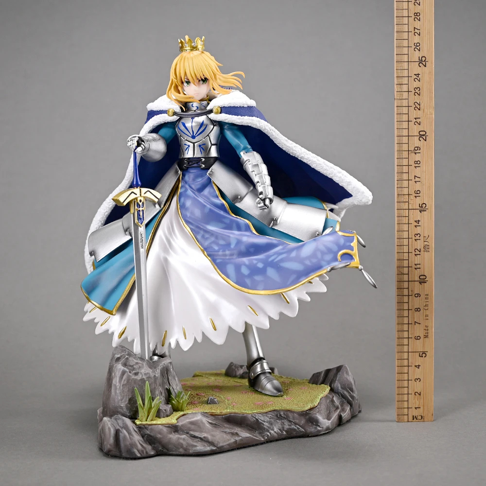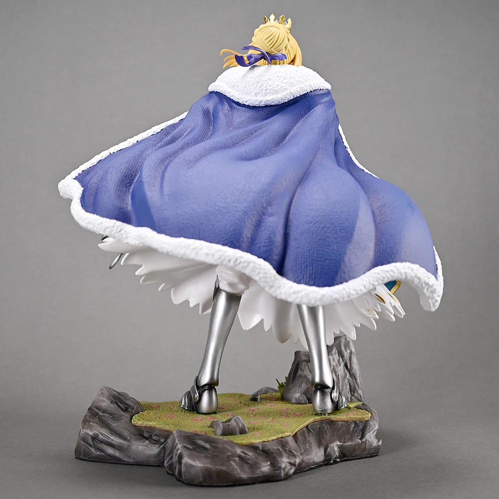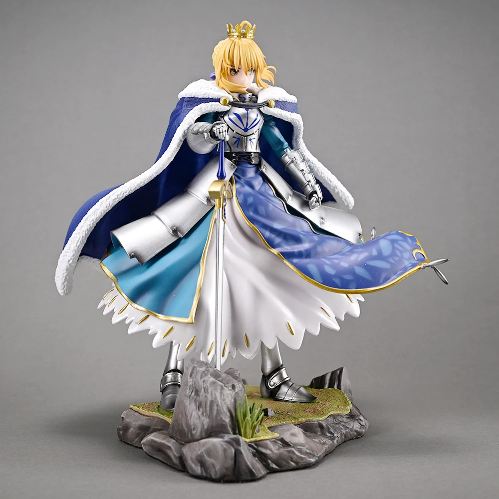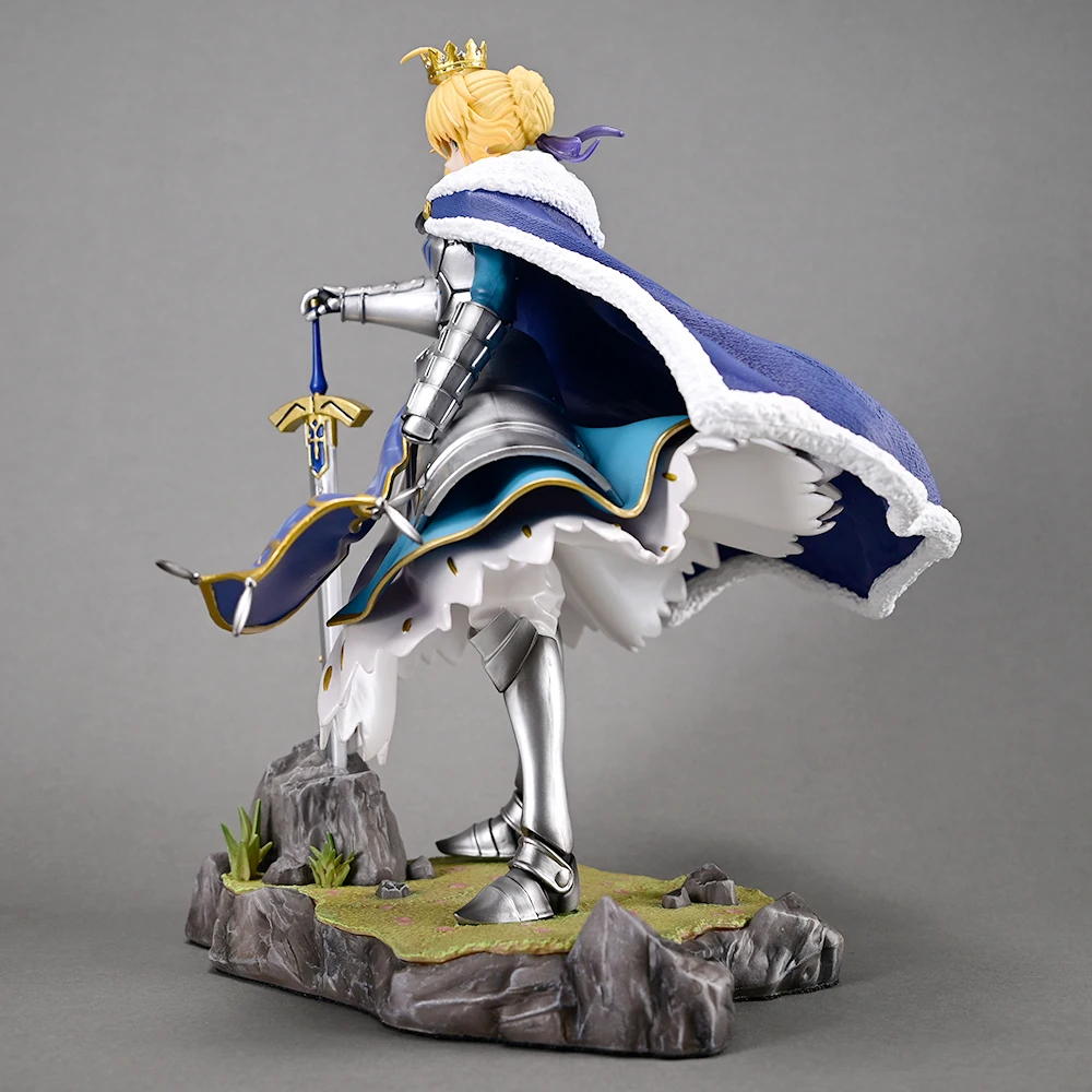 Cada aspecto de esta figura ha sido meticulosamente esculpido y pintado para asegurar una fidelidad asombrosa al diseño de Saber. Desde la compleja armadura y los pliegues de su capa, hasta la expresión serena pero determinada en su rostro y el brillo de su espada, la atención al detalle es inigualable. La calidad de la escultura y la pintura, junto con la base rocosa que la acompaña, crean una pieza que evoca su legendaria presencia en el campo de batalla.