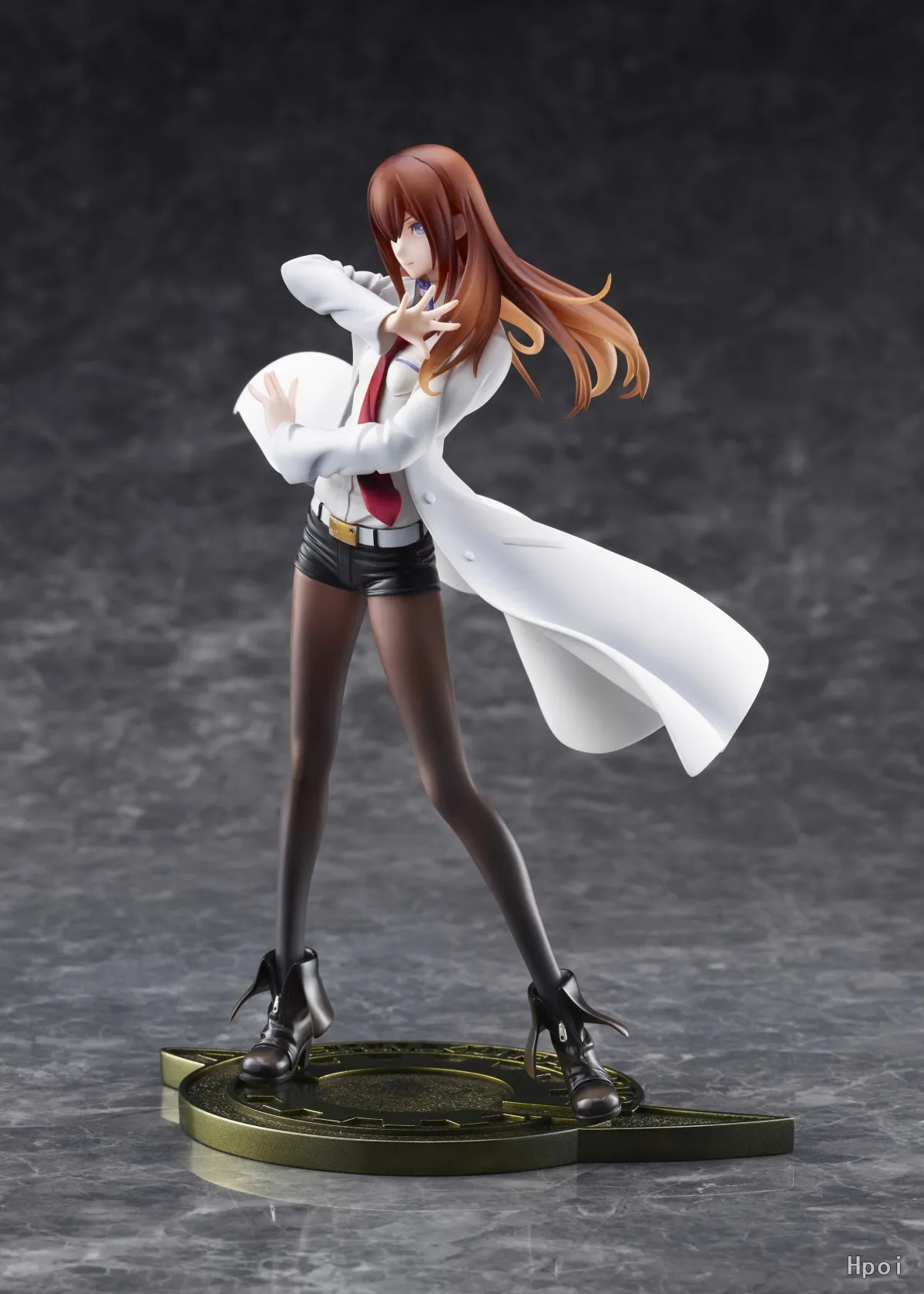 Cada aspecto de esta figura ha sido meticulosamente esculpido y pintado para reflejar la apariencia elegante e inteligente de Makise Kurisu. Desde el detalle de su cabello rojizo y sus gafas, hasta los pliegues de su bata de laboratorio y su uniforme, la atención al detalle es excepcional. La calidad de la escultura y la pintura, junto con la base que simula engranajes y elementos mecánicos, realzan la atmósfera científica y el aura de genialidad del personaje, haciendo de esta figura una pieza central que cautivará todas las miradas en tu colección.