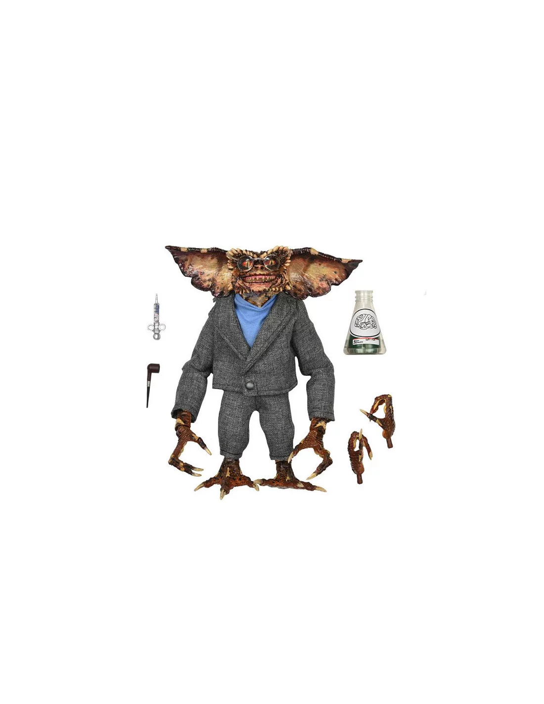 Figura articulada de la película ´Gremlins 2: la nueva generación´, tamaño aprox. 15 cm. Viste un traje de tela hecho a medida y viene con pipa, jeringa, suero cerebral y manos intercambiables. Embalaje de caja con ventana fácil de coleccionar con solapa frontal que se abre.