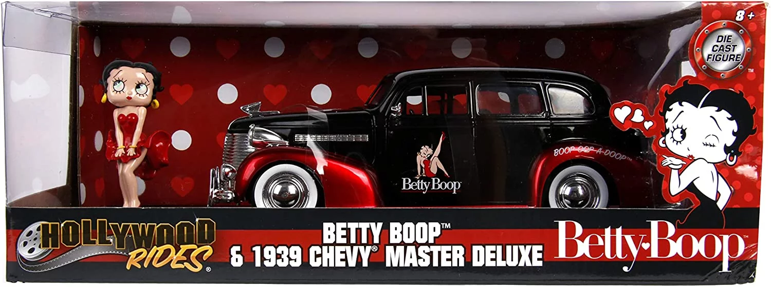 Este Chevy Master Deluxe de 1939 toma sus tacos de estilo directamente de Betty Boop e incluye una figura de Betty Boop 100% fundido. Este coleccionable bellamente esculpido se destacará en cualquier colección de Betty Boop. Boop-Oop-a-Doop!