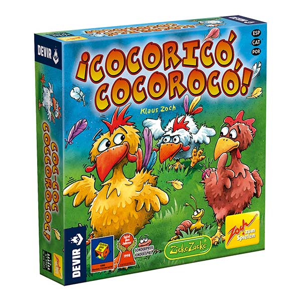 ¡Cocoricó Cocorocó! es un divertido juego infantil de Klaus Zoch en el que pueden jugar de 2 a 4 jugadores, a partir de 4 años, en partidas que duran entre 15 y 20 minutos. El objetivo del juego es llenar de plumas la cola de nuestro gallo o gallina, adelantando al resto de oponentes en una carrera frenética. Pero más que grandes patas y buenos muslos, para ser el más rápido del corral será imprescindible tener buena memoria.