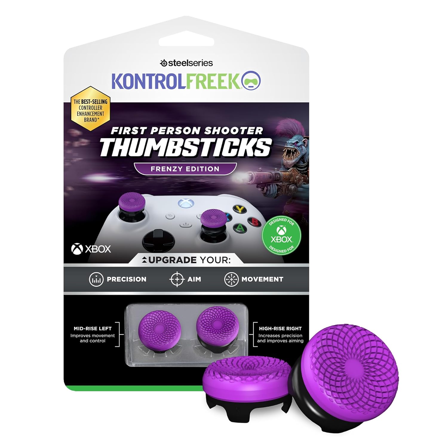 KontrolFreek FPS Freek Frenzy para Xbox One y Xbox Series X | Pulgares de rendimiento | 1 de altura alta, 1 de altura media | Morado/negro