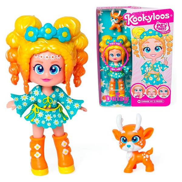 Muñeca coleccionable Daisy con un ciervo de mascota, de la colección Kookyloos Pet Party.