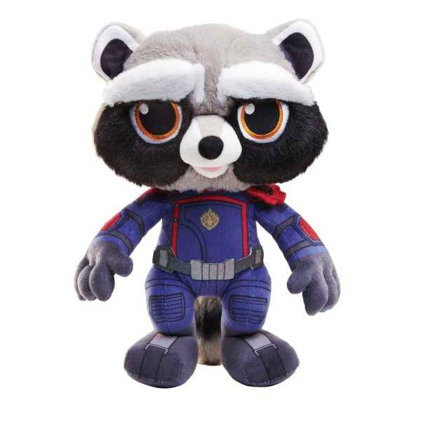 El peluche de Rocket puede sostenerse en pie por sí solo y, gracias a su cuerpo blandito, su cabeza peluda y sus ojos estilizados, es perfecto para acurrucarse cómodamente o para vivir aventuras con él.