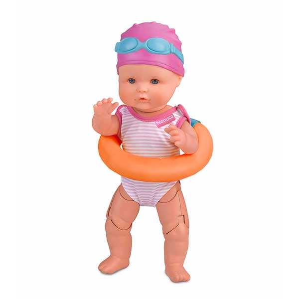 A los bebés les encanta estar en el agua y Nenuco estará listo con su divertido bañador y gorra para aprender a nadar. Nenuco tiene las piernas articuladas que se mueven en el agua y permite que nade como los bebés de verdad!