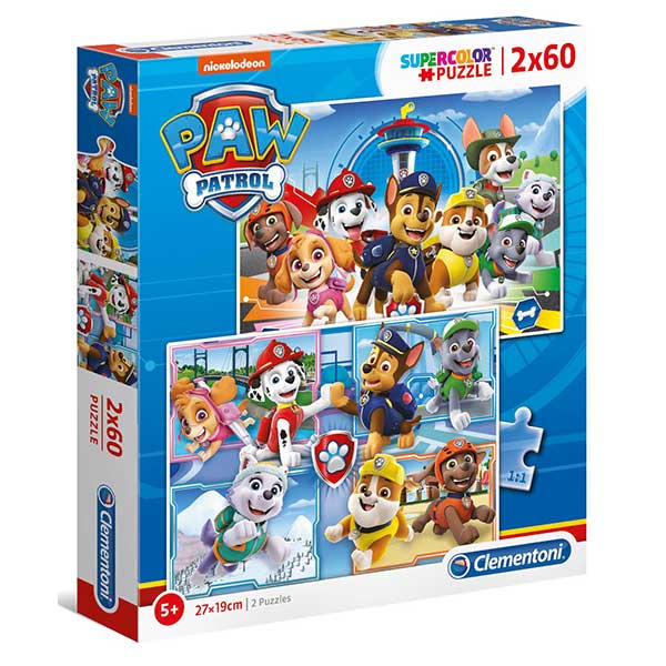 Incluye 2 puzzles de 60 piezas de los perritos más divertidos.