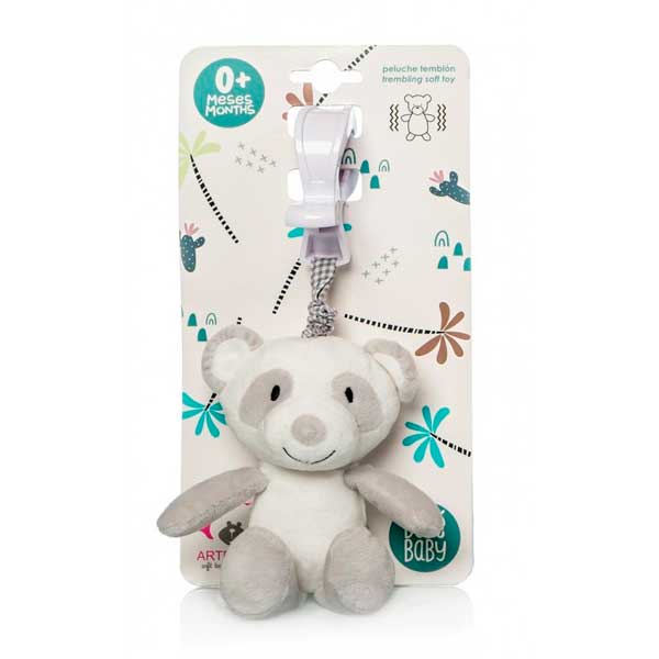 Oso panda de peluche infantil de tacto muy agradable. Estíralo y temblará mientras se recoge la cuerda. Con pinza para enganchar fácilmente en el cochecito o la cuna.