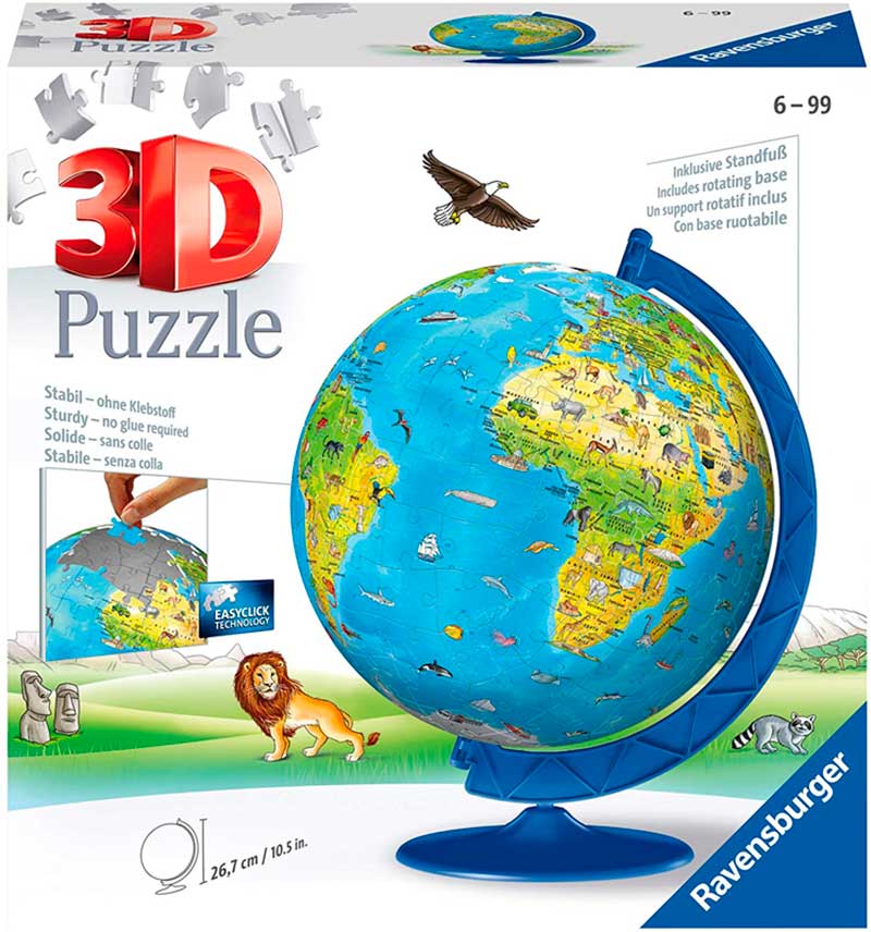 Puzzle 3d globo terraqueo 180 pzas. con base giratoria