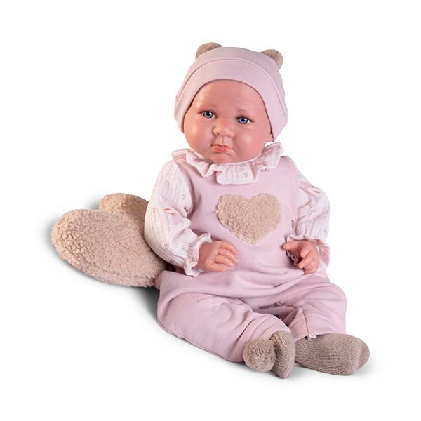 Incluye gorro, pijama, calcetines y cojín de corazón.