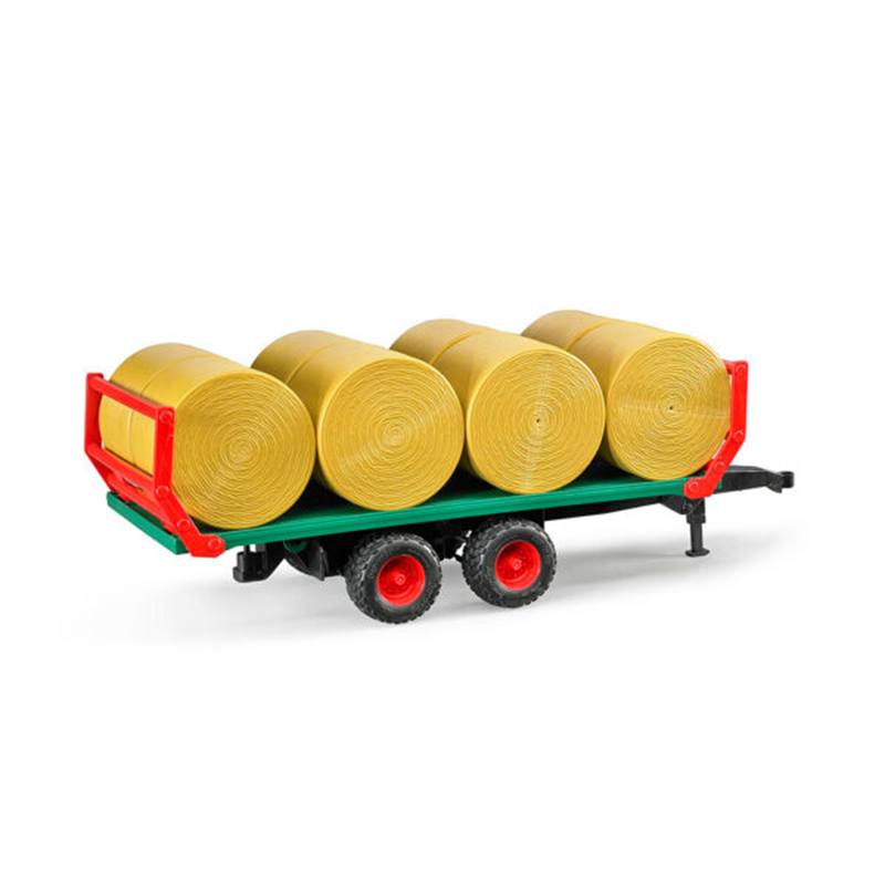 Remolque para balas de heno que incluye 8 balas. Enganche compatible con vehículos Bruder. Edad recomendada: +3 años. Dimensiones: 44 (L) x 15.5 (W) x 15.5 cm (H)