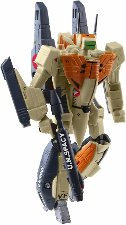 - Es bien conocido por su cabina en tándem que lo convirtió en el vehículo principal para entrenar a los pilotos de Veritech. El paquete de armadura incluye armadura de antebrazo, armadura de piernas, grupos de misiles y paquetes de propulsores.