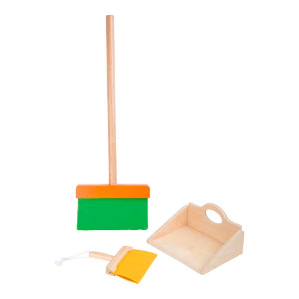 Set de Escoba de Madera maciza para niños con la que querrán limpiar sin parar. Con sus cerdas de fieltro agruparán todas las pelusas para recogerlas después con el recogedor.