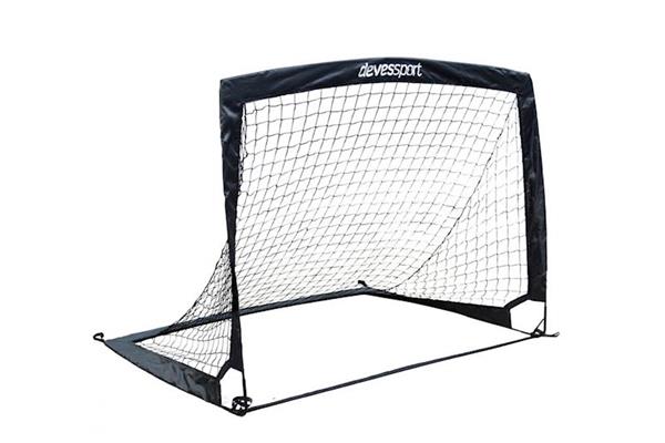 La portería más pequeña mide 120 cm de ancho, 90 cm de alto y 90 cm de profundidad, mientras que la portería más grande mide 180 cm de ancho, 91 cm de alto y 120 cm de profundidad. Ambas son ligeras y fáciles de transportar.