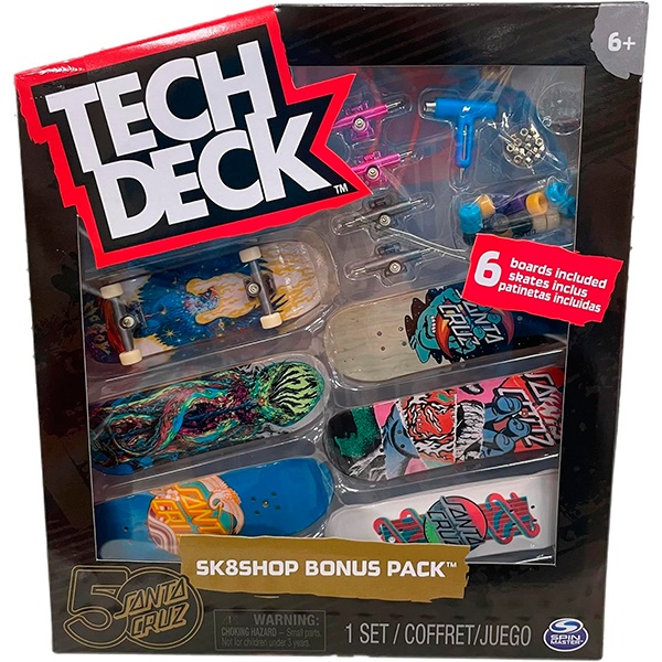 Bonus Pack Tech Dech Santa Cruz con 6 tablas de skate personalizables.
