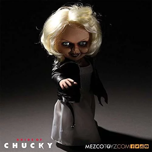 Este juego de niños novia de Chucky Tiffany Talking mega-scale 15 pulgadas muñeca perfectamente reproduce la hermoso, pero mortal Tiffany muñeca todo el camino de su bleached-blonde pelo, para su perfecta lacado uñas. esta muñeca movie-accurate características icónica detalles como la firma de Tiffany “piel y encaje, accesorios de boda, su” TIFF dorado placa collar, e incluso Chucky Nombre de calcomanía.